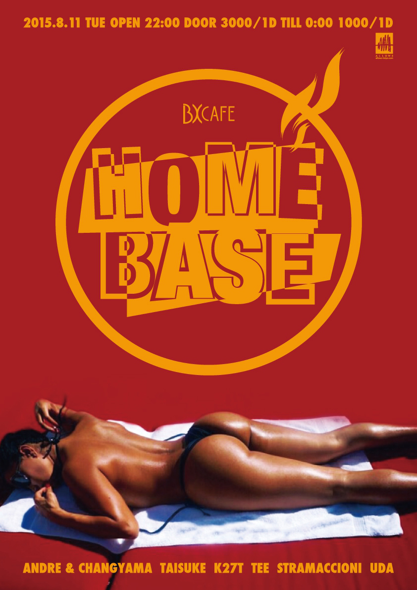 HOMEBASE@BX CAFE ■DATE: 8.11.TUE ■TIME: 22:00-MIDNIGHT ■DOOR: 3000.1D 1000.1D[TILL 24:00] ■LINE UP -DJ- ANDRE&CHANGYAMA TAISUKE K27T TEE STRAMACCIONI UDA ■DETAILS 90年代の良質なHIP HOPを中心に一晩を彩るPARTY。 クラブダンサー、原宿SHOPスタッフなどイケテル男子とイケテル女子が集まる第2火曜"HOMEBASE"8月も暑い夜になりそうです!!